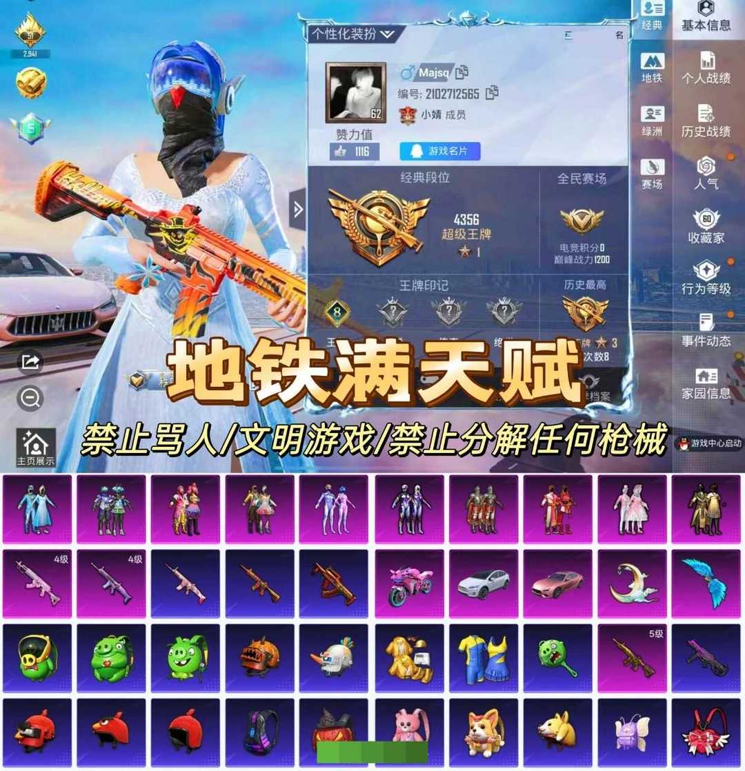 限制: 租号10次及以上 |装备描述:禁止利用账号进行开挂、使用辅助违规软件诈骗等违规操作。喜欢本账号请点 ☆收藏☆ 方便下次租用,谢谢光临惠顾!禁止利用账号进行开挂、使用辅助违规软件诈骗等违规操作。
