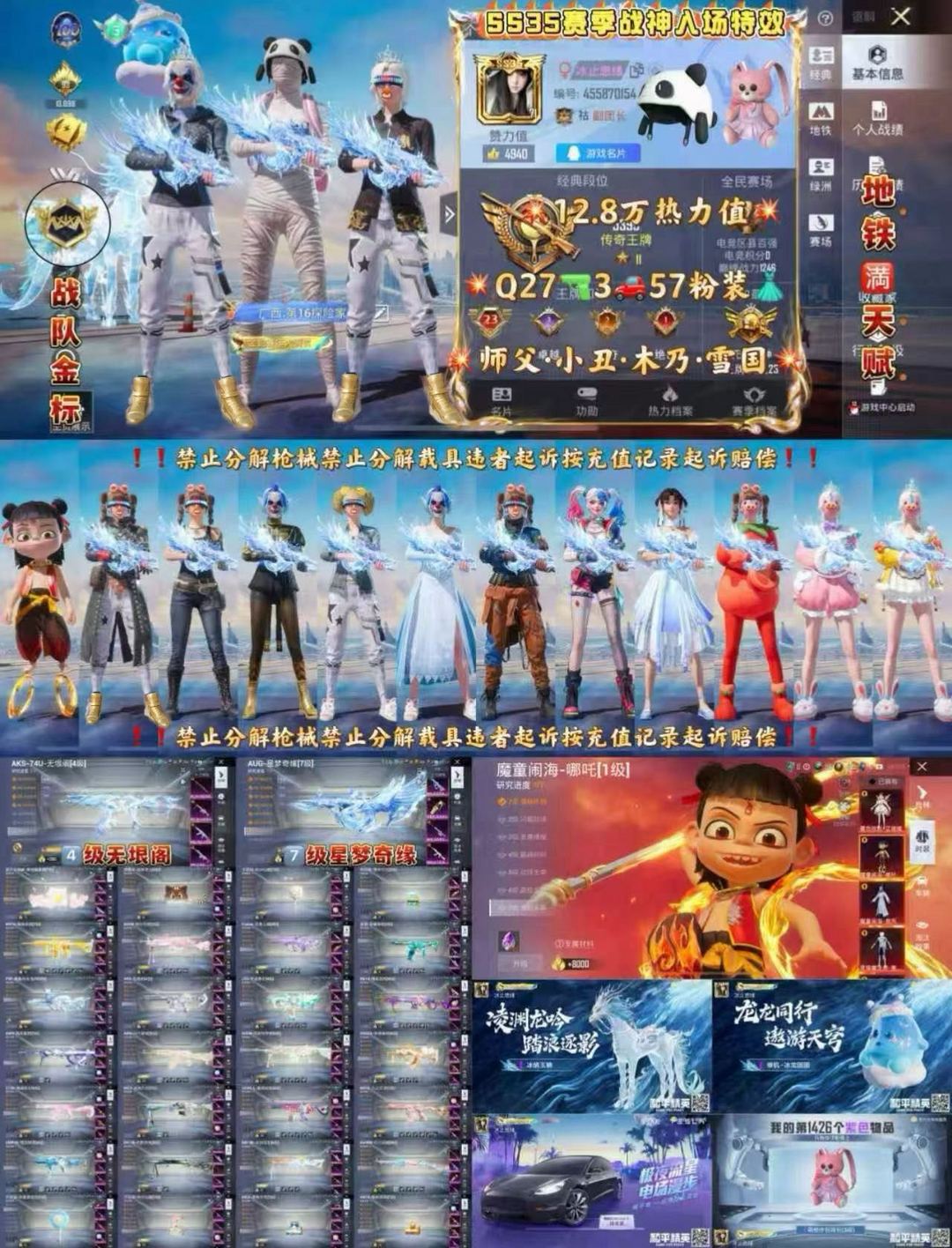 限制: 租号5次及以上 |装备描述:禁止拆解枪和车发先立马拉黑上报平台封杀喜欢本账号请点收藏方便下次租用,谢谢光临惠顾!禁止利用账号进行开挂,使用辅助违规软件诈骗等违规操作。