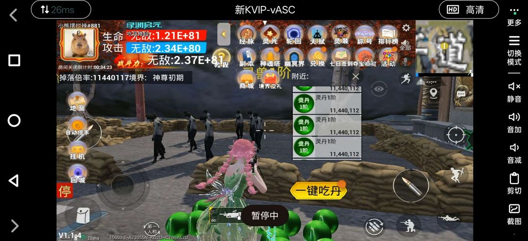 无敌2.36E+81~可刷新图九阶,1138万倍率,可以带小号吃丹,可以带老板吃丹,禁止毁灵装