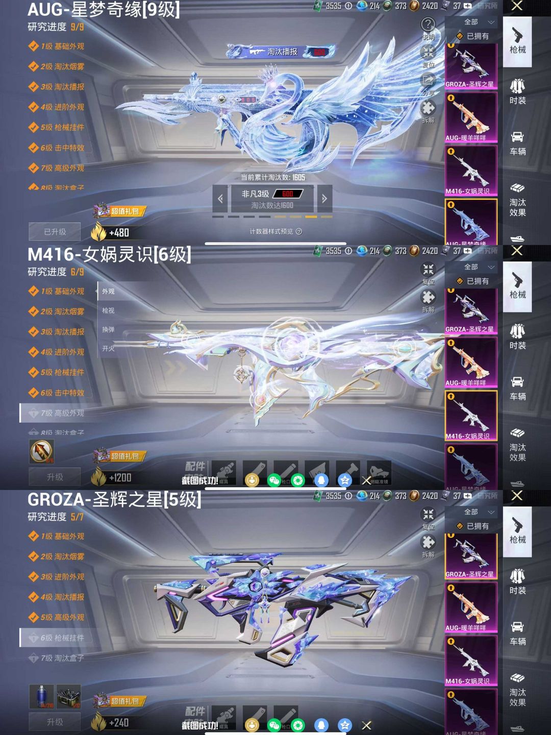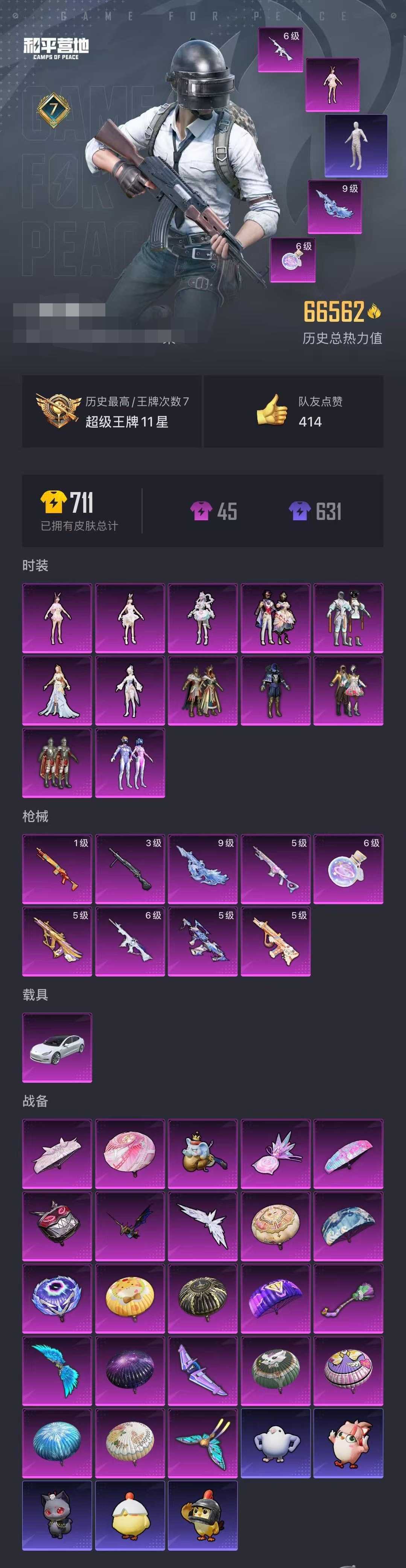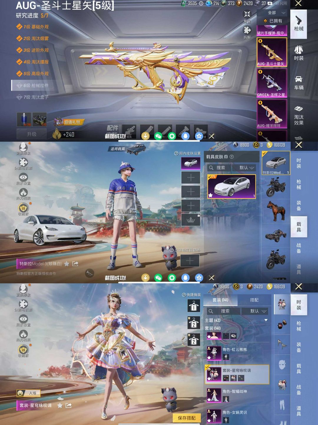 满级星梦奇缘AUG❤️6级女娲灵识❤️木乃伊小舞人物❤️梦幻火箭胖达❤️TT战队服浪漫天命❤️特斯拉