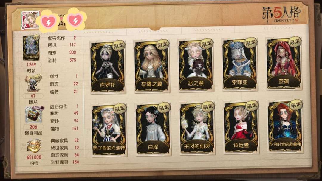 装备描述:❤️新增囚徒二限,新增幻灯师伴生金(带180头像),新增红蝶限时金 ✨小女孩金紫满配,约瑟夫限定满配,记者/昆虫/画家高配,多联动,抖音/虎牙/斗鱼框 ✨亮点:调香虚妄/祭司虚妄/岩鸽/白泽/温泉煮酒/永恒/蚀日者/典狱长/巴萨丽莎/欺惑之燕/猎龙者/恶之源/石榴碟/苍鹭之翼/恒梦/怒火/陌路仙踪/信使/静默之戟/索菲亚/箜篌/Checkmate/“夜魔”/晖之羽/黄金比例/纳西瑟斯/菖蒲/克罗托/十三娘/惊鸿/名誉首席/炼狱奏曲/破碎的芙拉吉尔/试运者/司药/宇宙女巫/总裁判长/亡灵之主/鸽子般的尤迪特/采风的仙灵/不合时宜的危鲁弗/聂莫黎/“华生小姐”/札克/中岛敦/太宰治/中原中也/芥川龙之介/B.Duck/永夜极光/伊莎贝拉/穆希卡/怪盗基德/赤松枫/黑白熊/日向创/JOKER/DM/加特 ✨租号期间请不要扔骰子,不要开隐身。禁止封号/禁言/公屏接共享/删归宿照等毁号行为 ✨严禁公屏发表涉H涉Z、卖号、辱骂他人等相关言论,严禁开挂、诈骗、挂机、毁号等行为。若发生以上行为账号被损毁可报警处理,请勿以身试法!如果出现以上现象按账号累充金额赔偿!租号默认已知晓并同意!