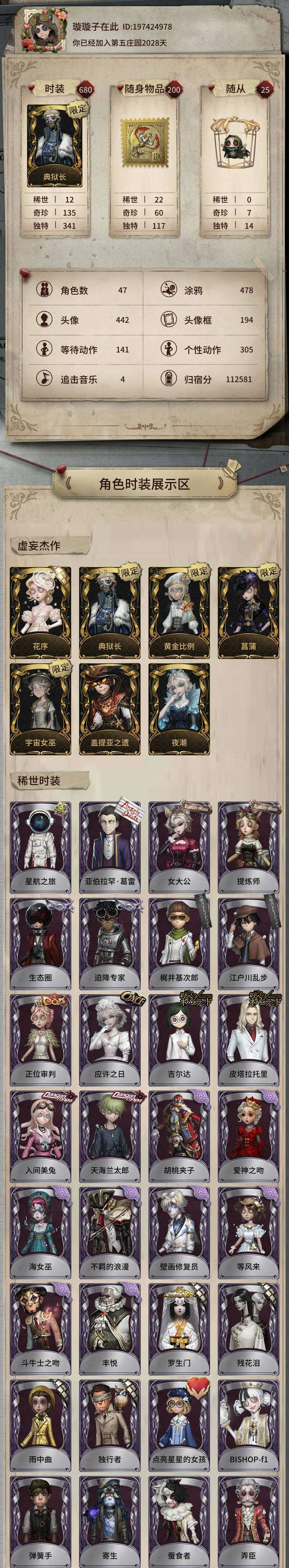 详情看下图(菖蒲❤️宇宙女巫❤️典狱长❤️夜潮❤️花序❤️黄金比例❤️)