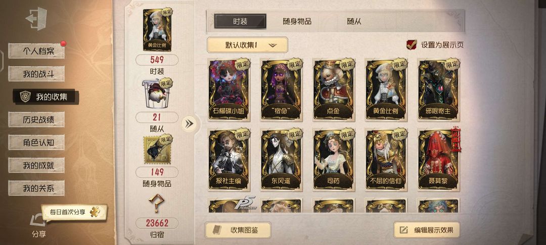 装备描述:549皮39金 黄金比例 点金 宿命 石榴蝶小姐 真相小姐 推理先生