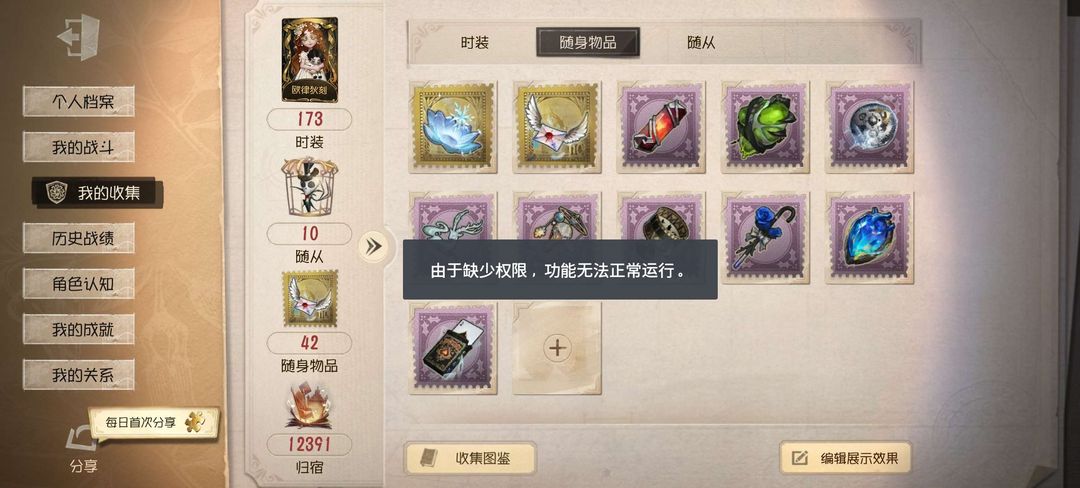 随身物品数量:42