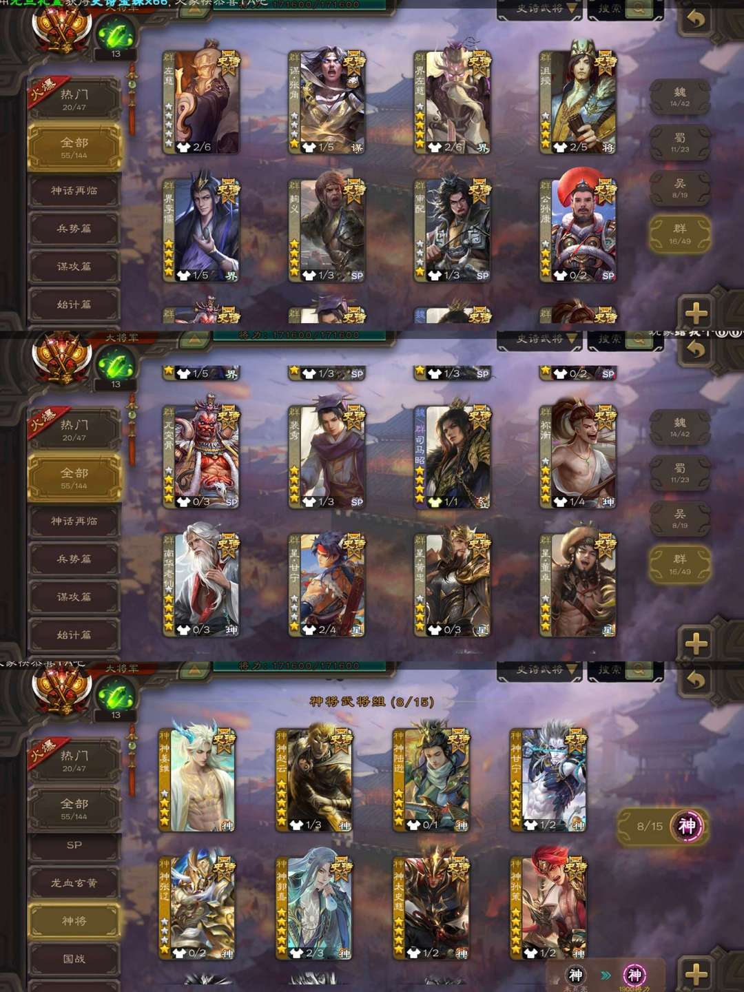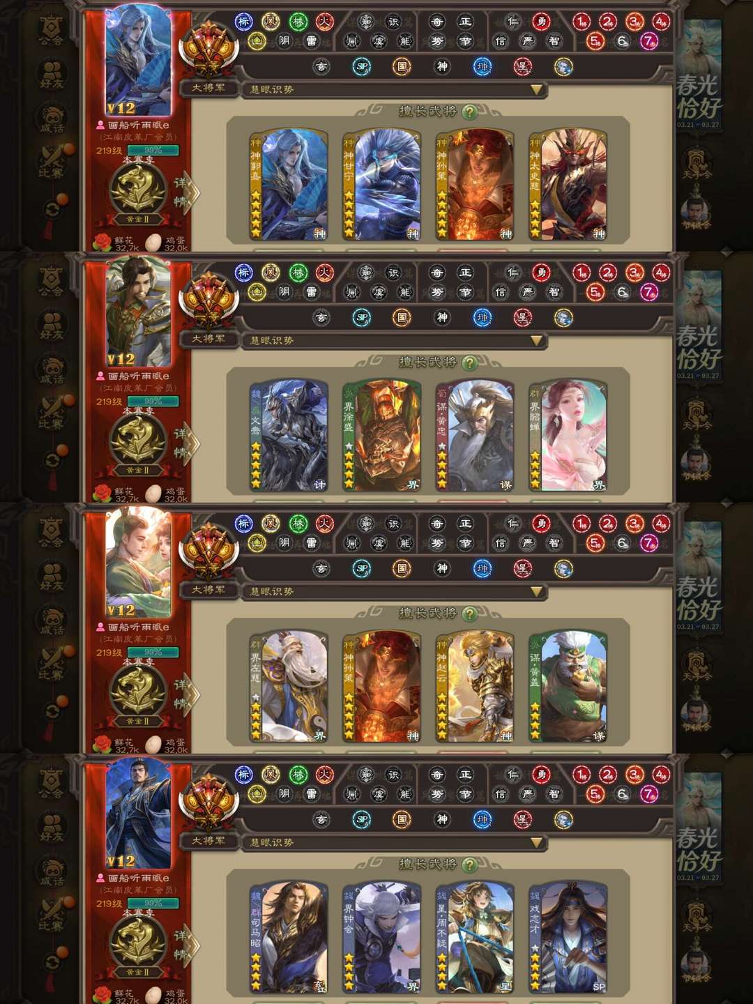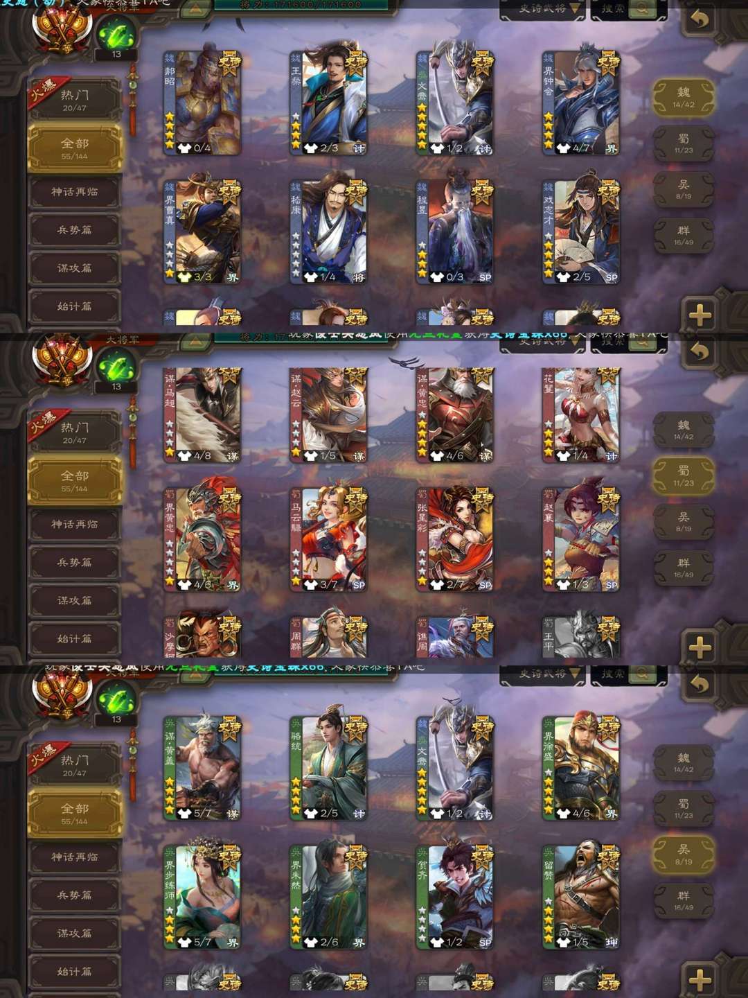 一等大将军♥神姜维♥回廊倚星折月神郭嘉♥回廊文鸯神孙策♥裴秀动神甘宁谋黄盖♥