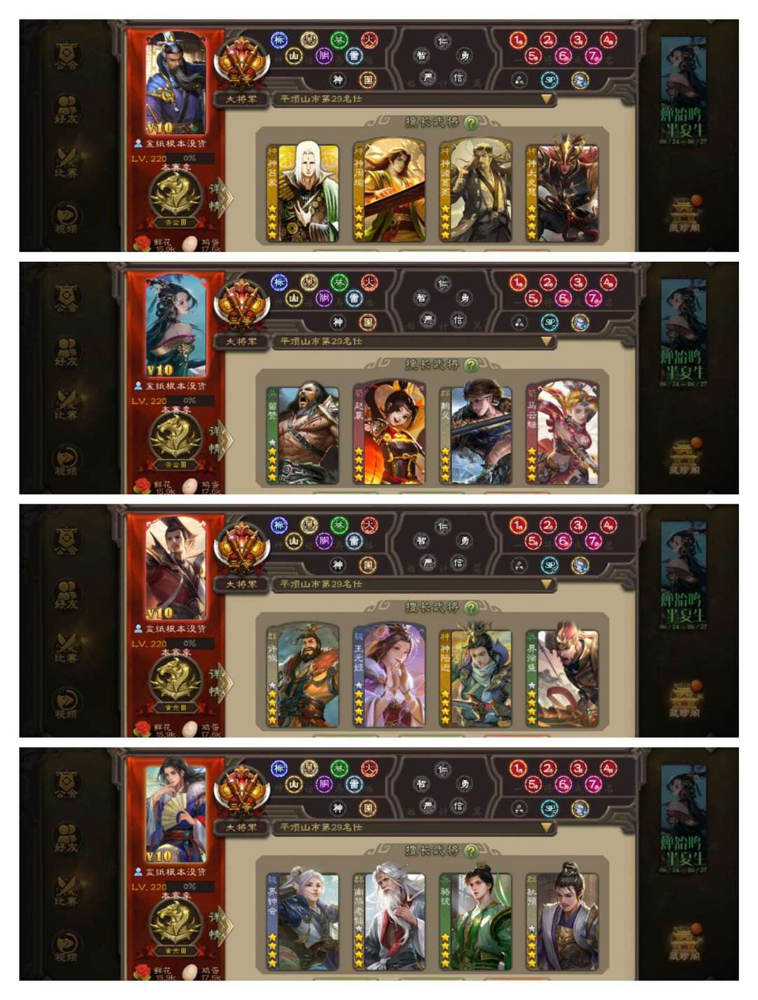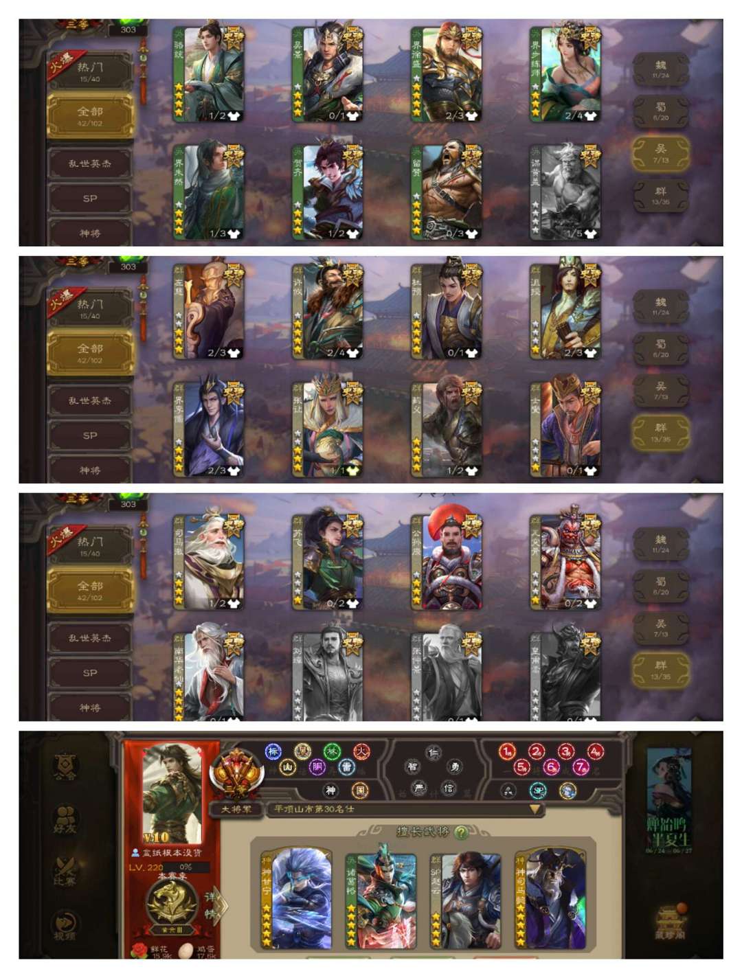 限制: 撤单率<19%才可租用此帐号装备描述:官方三等大将军,有卡,VIP10! 3五星炎龙:动神甘宁动神司马懿,金诸葛恪! 18四星玉龙:动王元姬动许攸动赵襄动马云禄,金界徐盛金界钟会金界黄忠,神太史慈神陆逊杜预,骆统南华老仙留赞聚义! 42史诗武将,界李儒司马徽等! 26动皮66金皮155国战皮肤!
