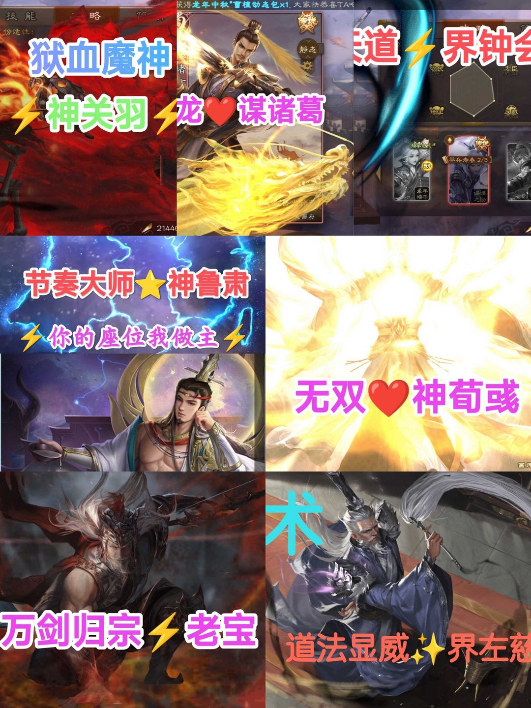 大将军♈动谋诸葛亮神鲁肃♊双形态神郭嘉☀回廊谋关羽♏双回廊谋黄忠♐回廊文鸯回廊神荀彧裴秀回廊南华