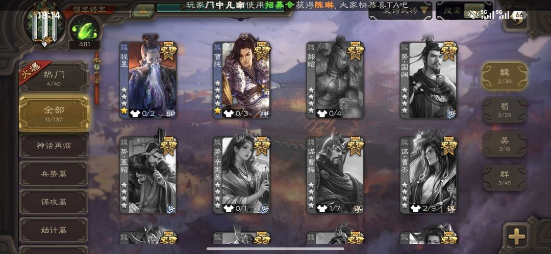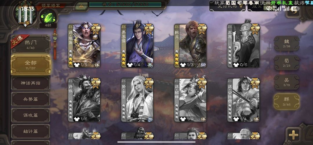 装备描述:动神司马懿 势太史慈 界徐盛 骆统 界李儒 麹义 沙摩柯 曹纯