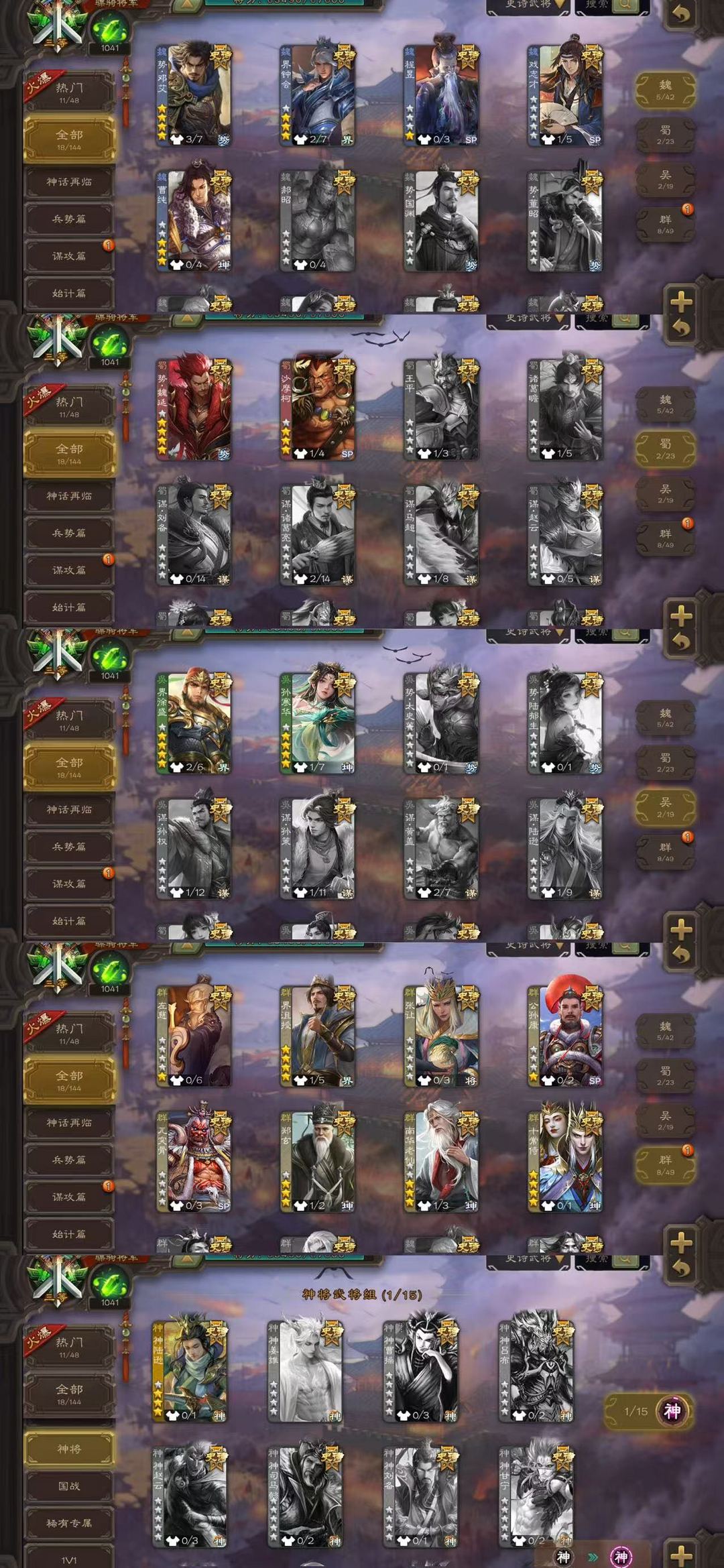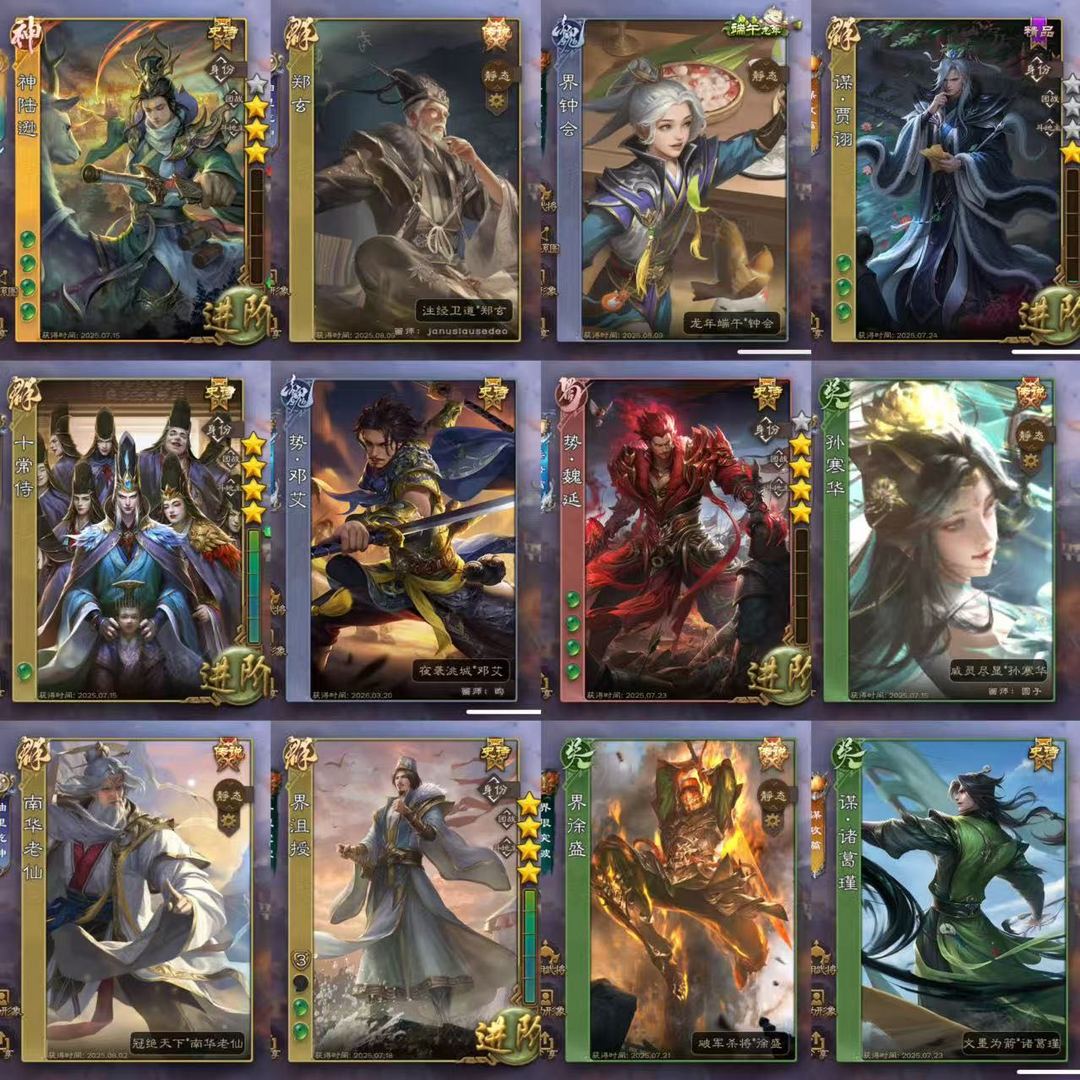 装备描述:【有卡三卡】势魏延/十常侍/奇门动孙寒华/界沮授/回廊动南华老仙/回廊动郑玄/回廊动界徐盛/动界钟会/势庞義/谋诸葛瑾/谋贾诩/势陈到/吴轲