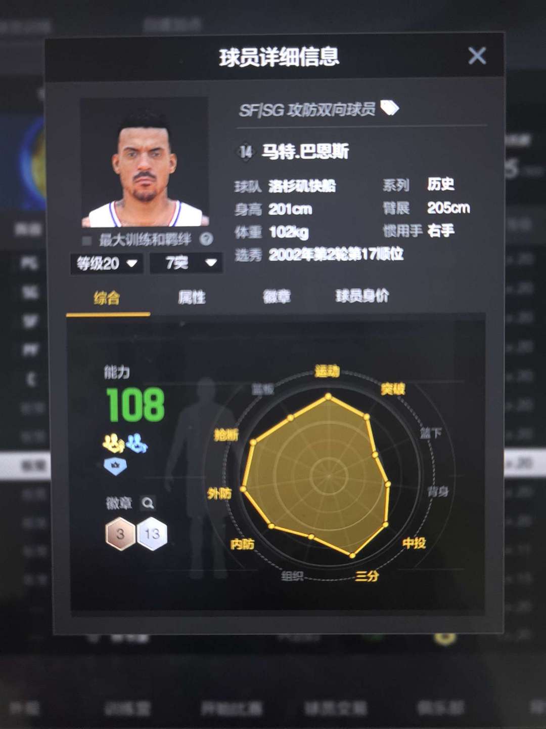 装备描述:可排位陈列室邓肯 历史巴特勒 10骑士詹姆斯 字母哥 马特巴恩斯