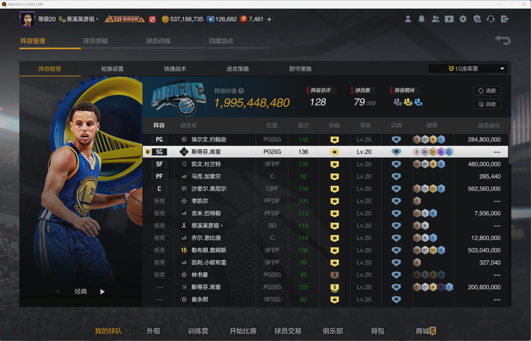 30亿国家队30套服装(10库里体验)10詹姆斯10杜兰特10奥尼尔10魔术师王朝顶尖阵容