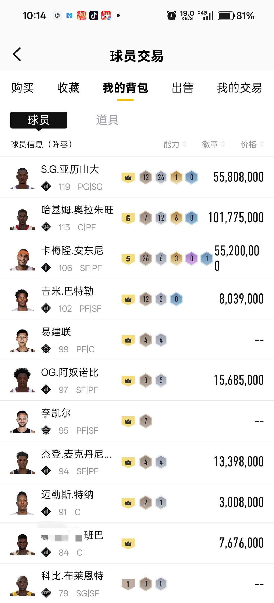 装备描述:(可排位)街头王朝完美阵容6大梦奥拉朱旺5安东尼亚历山大杰登易建联李凯尔og巴特勒班巴超多满特训十个满特训