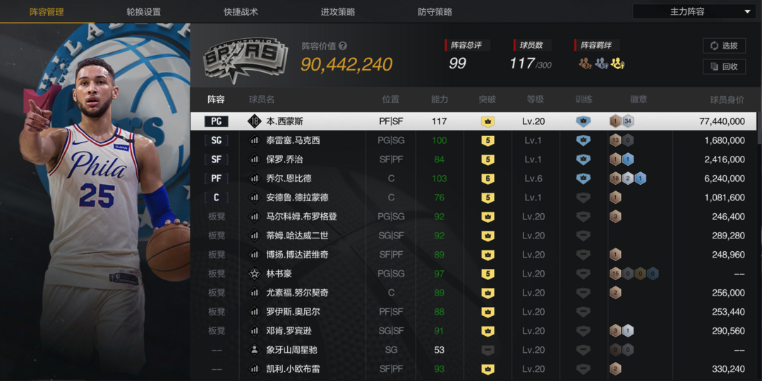 【西帝】满突X10本西蒙斯♥76人王朝队套♥大衣柜♥可排位