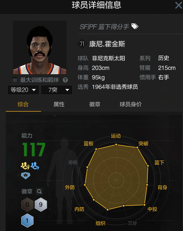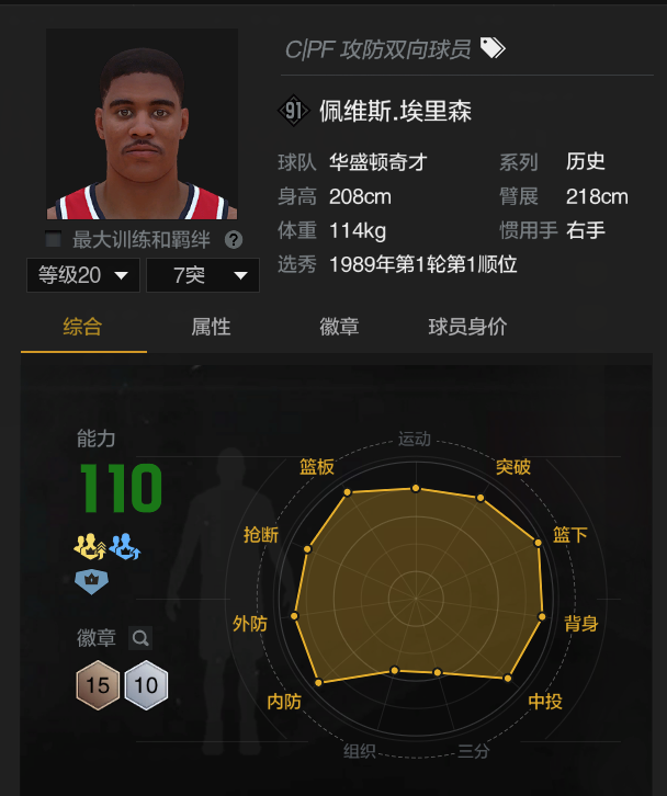装备描述:可排位,号上7个满特训卡。欢迎兄弟们来体验! 衣柜里有6件永久衣服可供选择! 埃里森可拉条隔扣,可投底角三分,内外防兼顾,移动灵活手感极佳,篮板直升机,娱乐性拉满,