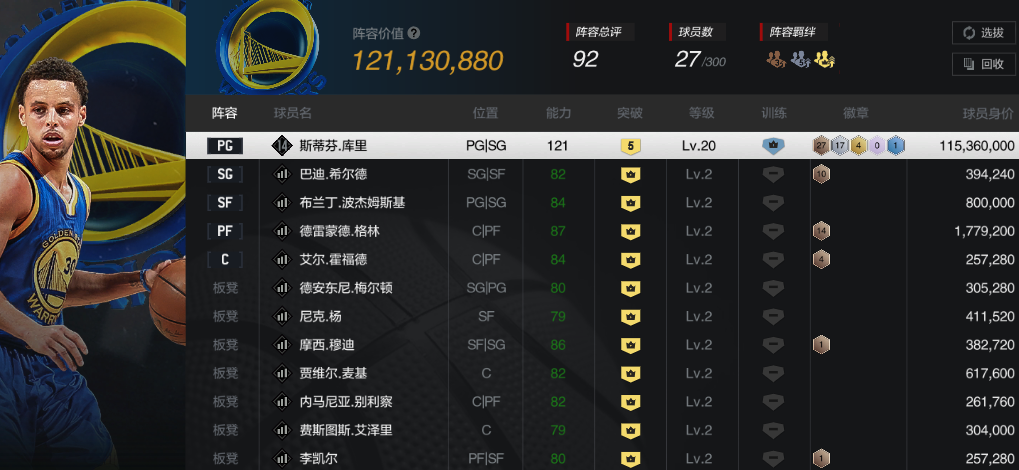 角色名:库里No.1