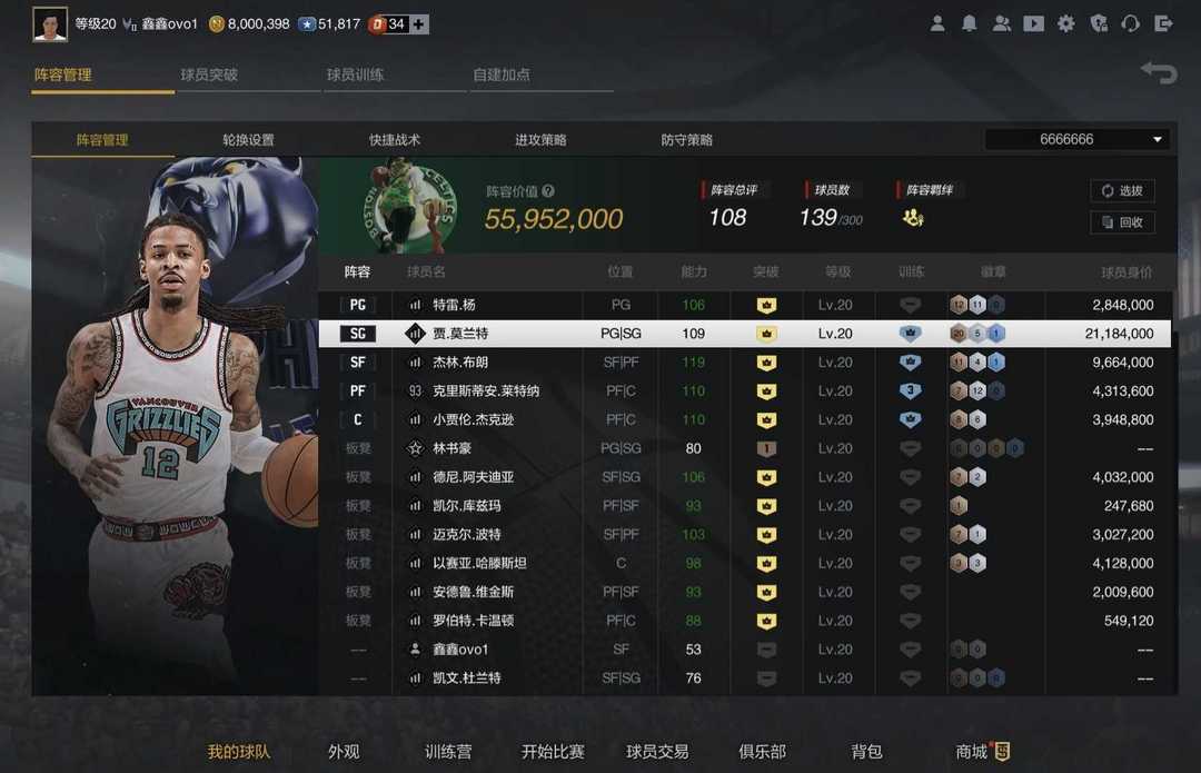 可排位⭐满突莫兰特+杰伦布朗,莱特纳,特雷杨,阿夫迪亚小波特哈腾威金斯