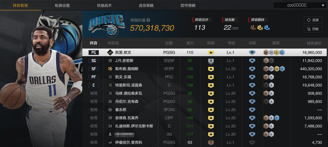 装备描述:【巅峰骑士套】【10突双时刻老詹】【10欧文/TT/乐福/大Z/瓦莱乔/德拉维瓦】【JR】