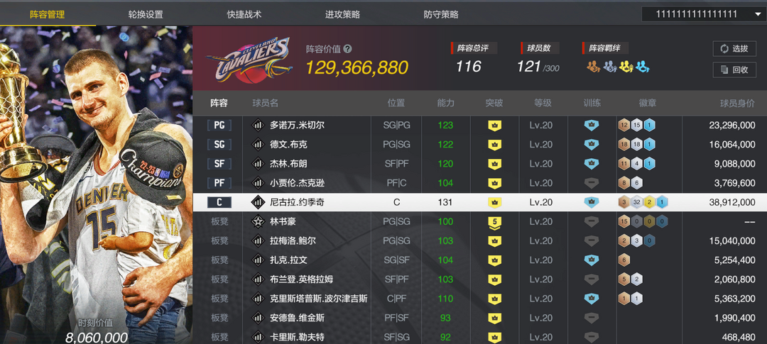 【1.3E】无法排位♥10突约基奇全能内线♥米切尔♥布克♥布朗♥拉文♥三球♥5林书豪♥有服饰