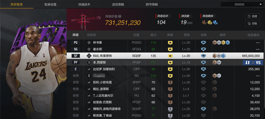 装备描述:【10突08科比】【10突西蒙斯】【10时刻书豪】【四大分卫】【外线达人】