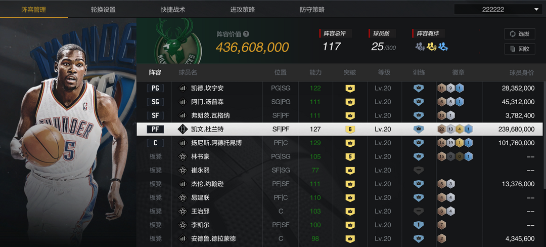 【4.4E】无法排位♥6突雷霆杜兰特全能巨星♥10突字母哥♥阿门汤普森♥坎宁安♥龙之队♥多服饰