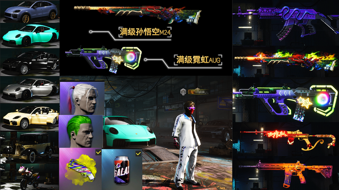 【双满级】满保时捷/双小丑/满级霓虹AUG/满级孙悟空M24/6级铃儿响叮当mini14/2级南瓜