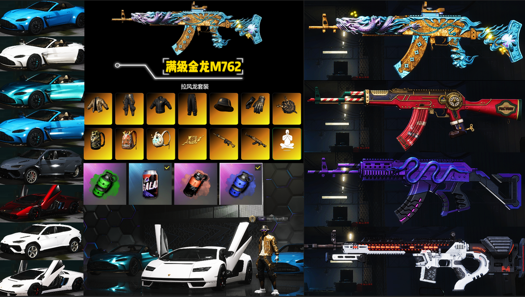 满兰博/满马丁/有车展大厅/满级金龙M762/四级赛波MK12/圣诞AKM/渔夫帽/滑雪镜/拉风龙