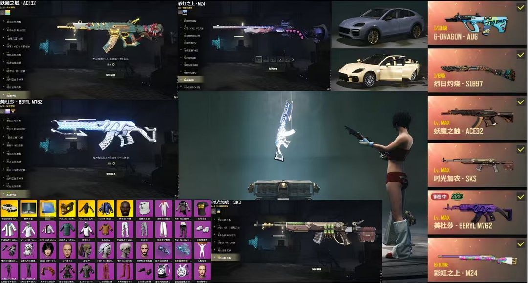 全套尼尔/保时捷轿跑/保时捷SVU/满级异色美杜莎M762/满级异色妖魔ACE/满级时光加农SKS/